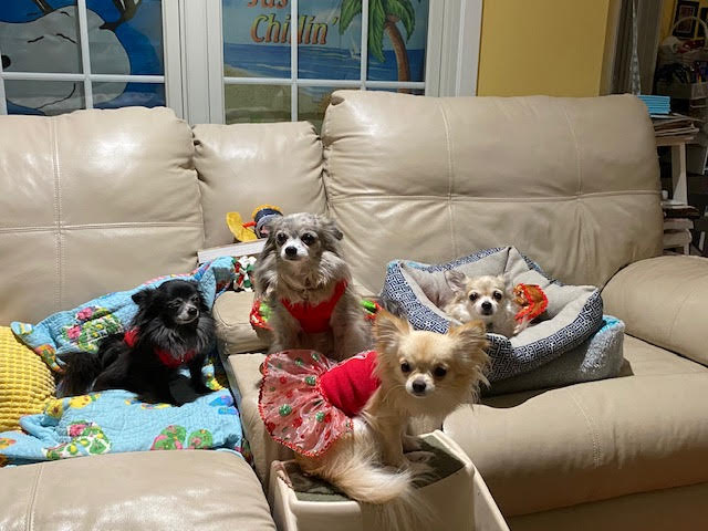 Two of my retirees, one of my puppies, and one of my rescues all enjoying the couch potato life, and I LOVE it!!